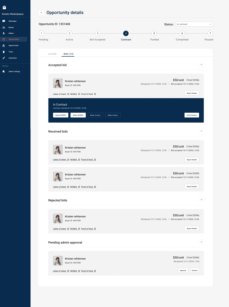 Kinetic Marketplace, a US-based platform, set out to revolutionize the wholesale buying and selling industry by addressing major issues like fraud and contract management. Their innovative platform aimed to make B2B transactions safe and seamless, ensuring secure and verified transactions for buyers and sellers. The founders recognized that existing platforms often lacked the necessary security measures and efficient contract management, leading to mistrust and inefficiencies.